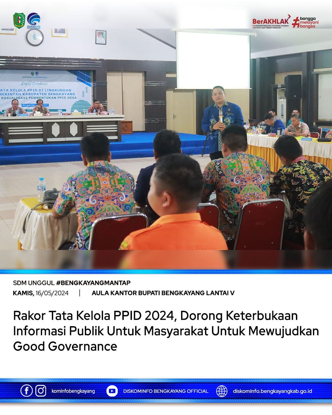 Bengkayang – Pemerintah Kabupaten Bengkayang melalui Dinas Komunikasi dan Informatika Kabupaten Bengkayang menggelar Rapat Koordinasi Tata Kelola Pejabat Pengelola Informasi dan Dokumentasi (PPID) dilingkungan Pemerintah Kabupaten Bengkayang dan Sosialisasi Pembentukan PPID Desa Tahun 2024 yang bertempat di Aula Kantor Bupati Bengkayang Lantai V pada Kamis (16/5/2024).