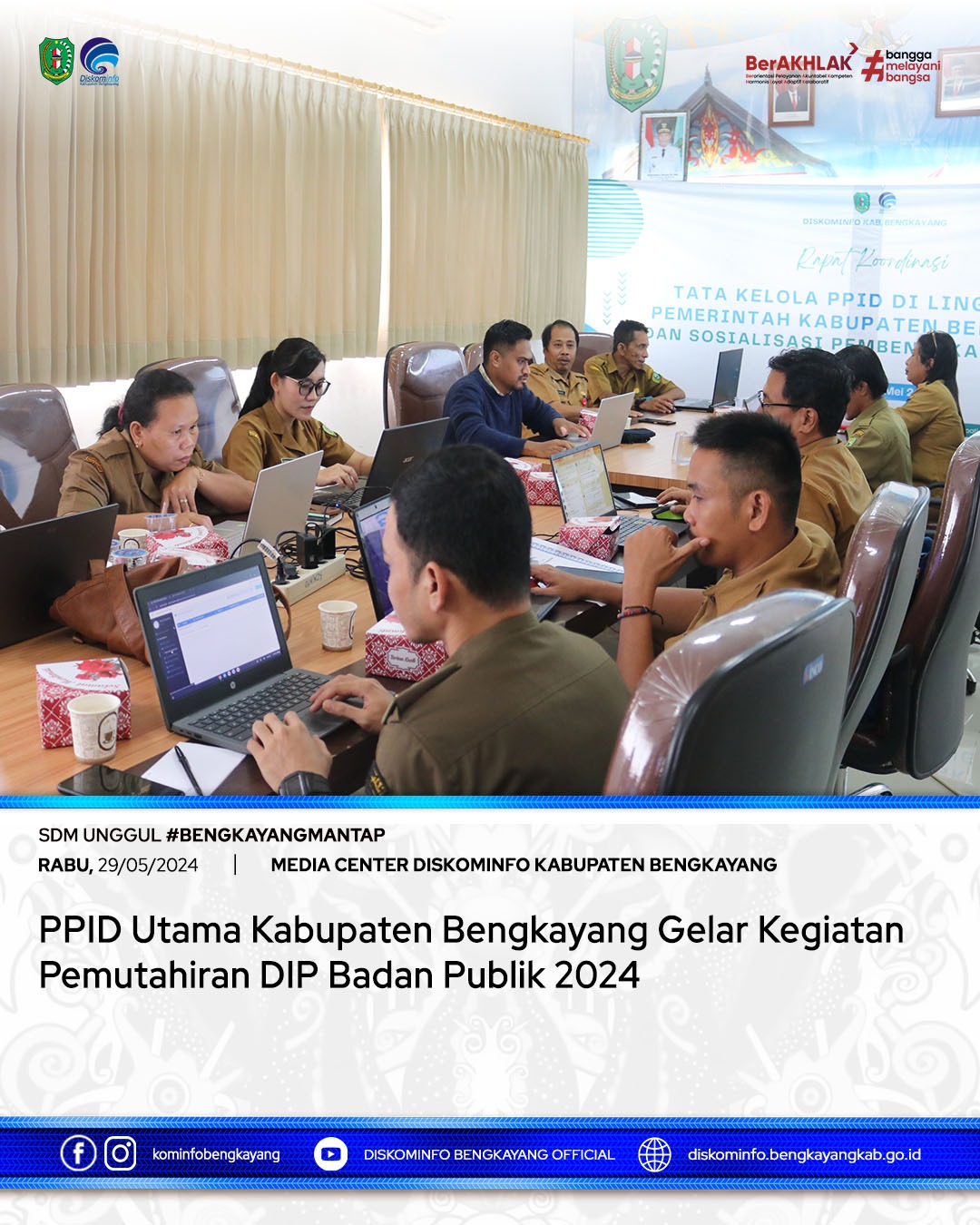 Bengkayang – Dinas Komunikasi dan Informatika Kabupaten Bengkayang selaku Pejabat Pengelola Informasi dan Dokumentasi (PPID) Utama mengadakan pendampingan terkait dengan pemutahiran Daftar Informasi Publik dilingkungan Pemerintah Kabupaten Bengkayang tahun 2024 yang bertempat di Ruang Media Center pada Dinas Komunikasi dan Informatika Kabupaten Bengkayang yang berlangsung selama 3 hari, pada tanggal 27-29 Mei 2024.