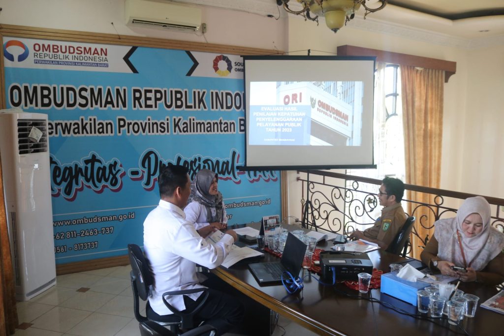 Adapun agenda audiensi kali ini membahas tentang evaluasi hasil penilaian kepatuhan penyelenggaraan pelayanan publik tahun 2023 Kabupaten Bengkayang yang disampaikan oleh Tari Mardiana, S.T., M. Eng., Kepala Keasistenan Pencegahan Maladministrasi Ombudsman RI Perwakilan Kalbar. Tari Mardiana, S.T., M. Eng., menyampaikan beberapa indikator penilaian yang perlu dioptimalkan Pemkab Bengkayang. Salah satunya penyediaan data atau bukti dukung Pelaporan. “Untuk mengefisiensikan penilaian perlu dipahami persepsi pengaduan dan standar pelayanan, Kami (Ombudsman) hanya menghitung laporan pengaduan yang terjadi permasalahan, bukan yang termasuk standar pelayanan”, ucap Tari Mardiana, S.T., M. Eng.