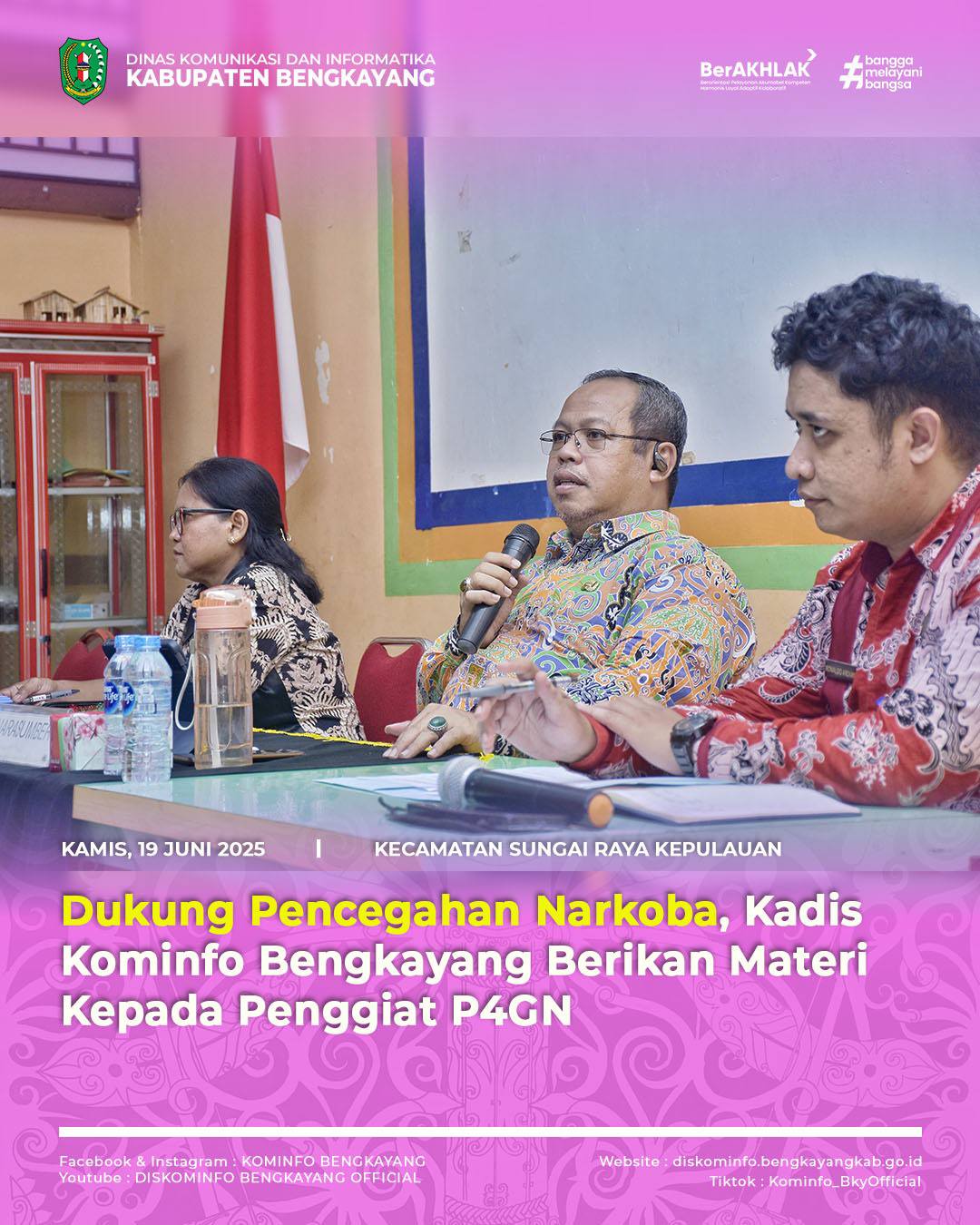 Bengkayang – Dalam rangka Pencegahan, Pemberantasan, Penyalahgunaan dan Peredaran Gelap Narkotika (P4GN), Kepala Dinas Komunikasi dan Informatika Kabupaten Bengkayang, Ucok P. Hasugian, S.STP., M.Si., memberikan materi terkait Literasi Digital kepada Penggiat P4GN di kalangan tenaga pendidik yang bertempat di Desa Karimunting, Kecamatan Sungai Raya Kepulauan pada Kamis (19/06/2025).