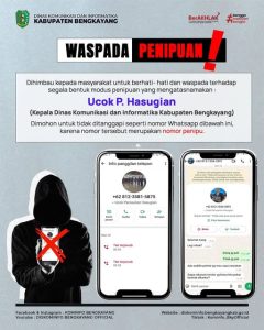 Read MoreMohon untuk berhati-hati dan selalu waspada terhadap segala bentuk modus penipuan yang mengatasnamakan Bapak Ucok P. Hasugian, Kepala Dinas Komunikasi dan Informatika Kabupaten Bengkayang